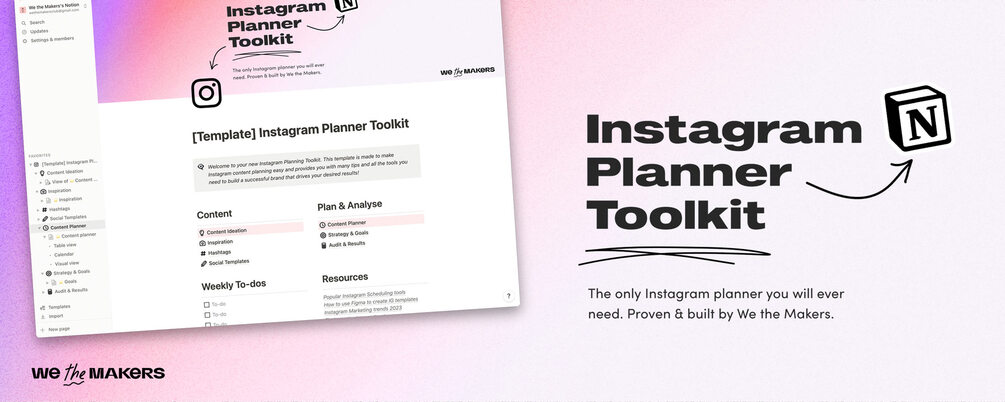 The ultimate Instagram Planner Toolkit for personal or professional use. Build in Notion.