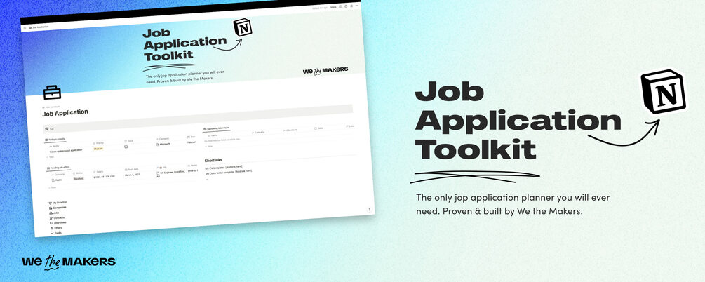 The ultimate Job Application Planner / Toolkit for personal or professional use. Build in Notion. Level up your Job search!